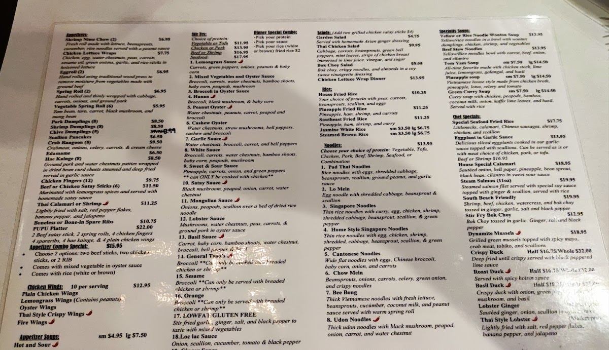 Rice lovers will find a variety of options, including the classic House Fried Rice, Pineapple Fried Rice, and the flavorful Southeast Fried Rice. For seafood enthusiasts, the Special Seafood Fried Rice is a standout, combining the best of both worlds. The Steamed Salmon and South Beach Friendly dishes in the Chef Specials section promise a fresh and healthy experience.